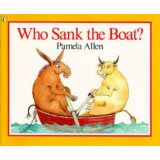 This month’s book is entitled, Who Sank the Boat, by Pamela Allen.  In this story a cow, a donkey, a sheep, a pig, and a tiny mouse decide to go for a ride in the bay.  Oh my, the boat sinks!  Do you know who caused the boat to sink?  This is a funny story that helps young children learn about size and weight.