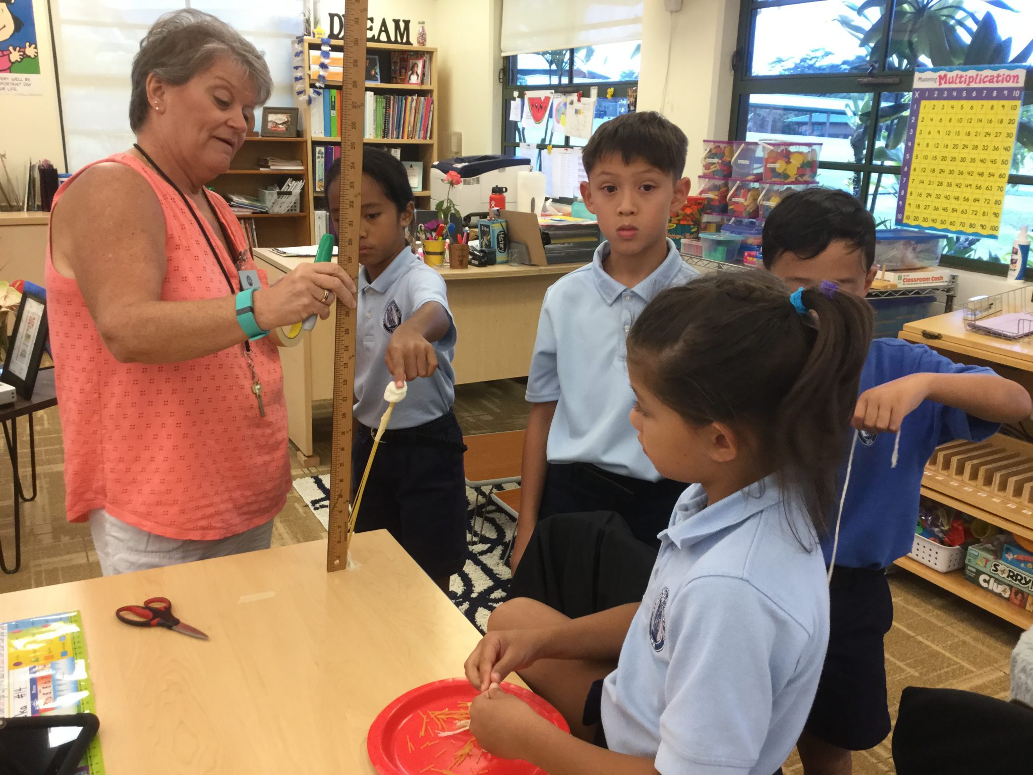 3B haumāna practiced working together to achieve a common goal: to build the tallest freestanding structure possible using only spaghetti, string, tape, scissors and a marshmallow.