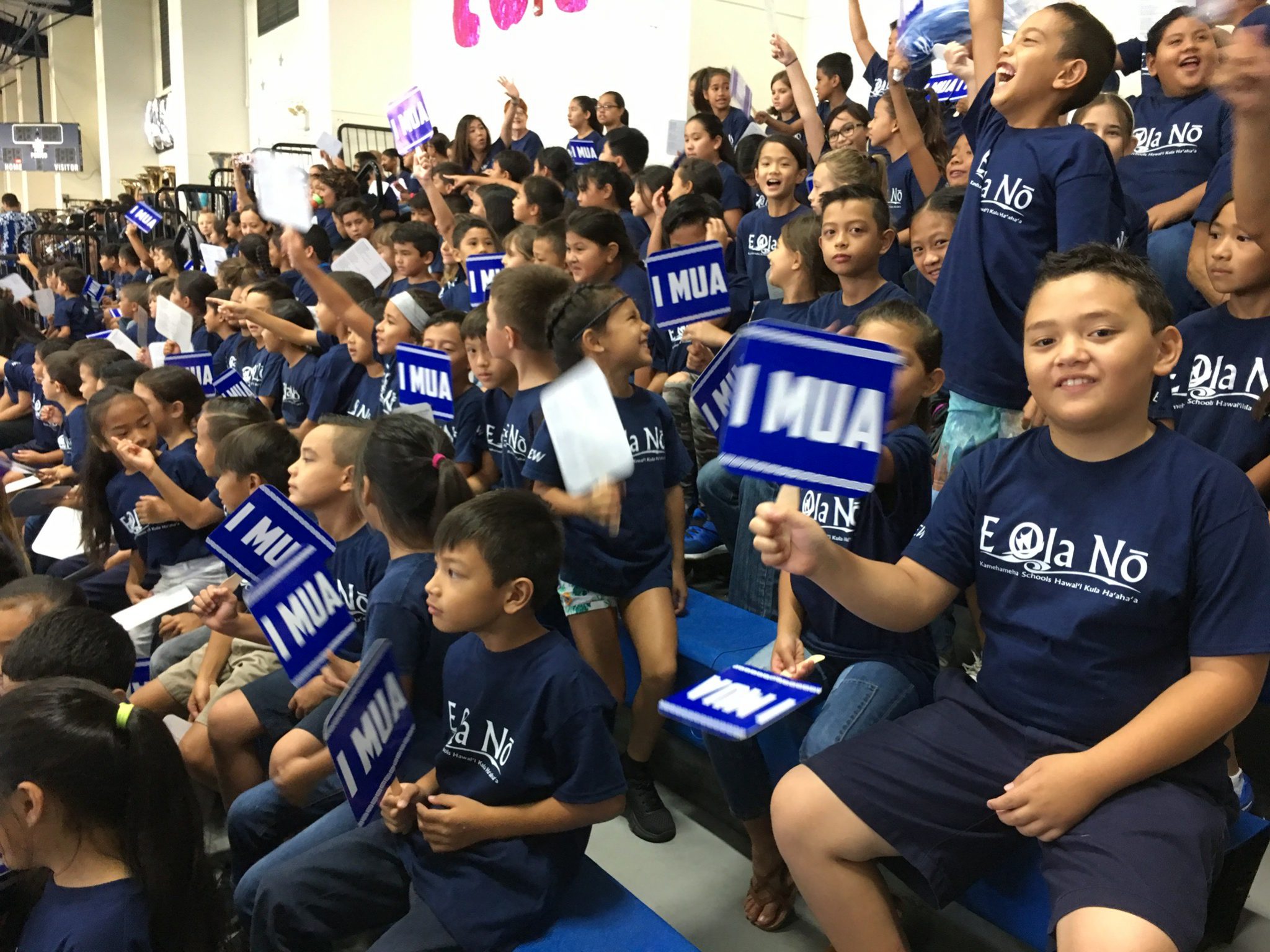 What a fun week it has been dressing up in our PJs, sportswear, and beachwear to show our school spirit! Today we ended the week with a Pep Rally with the entire school K-12 in Koai’a Gym. The gym was filled to the brim with happy, smiling faces, loud chanting and cheering as we showed what it means to be a Kamehameha Warrior.