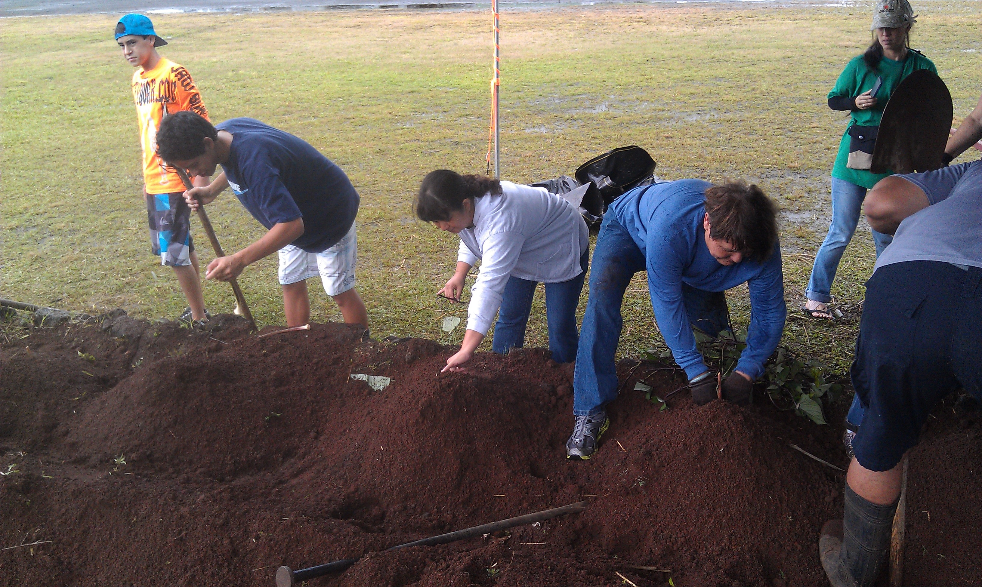 Even with the ua (rain) falling that morning, our ‘ohana showed up to our very first LA ‘OHANA (‘Ohana Day) for this school year. Planned by our Counseling Department with the kokua of Kumu Keali’i Akina, ‘ohana members were able to learn about the planting of kalo. The preparation of the lepo (dirt) to the planing of the huli was an experience for many of our ‘ohana members! Working alongside their child and members of the school was a truly a blessing. Mahalo to our ‘ohana, our counseling staff, and Kumu Keali’i for a wonderful morning.