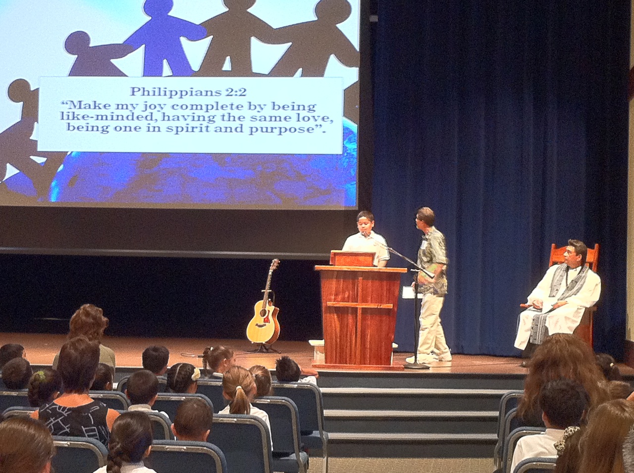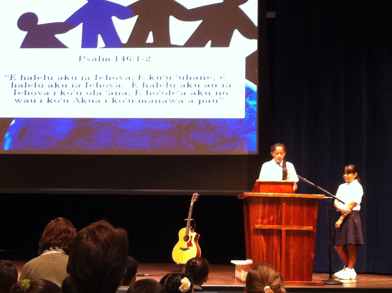 We had our first ‘Ekalesia of the school year on September 12. All of our student speakers and leaders form the ES Ministry did an awesome job. It’s not easy getting up in front of an audience! We were blessed by Kahu’s message about Pilina and by how he made his lesson interactive! He demonstrated what pilina is by having the entire congregation move a large beach ball from one end of chapel to the other. So simple, but we all got it!