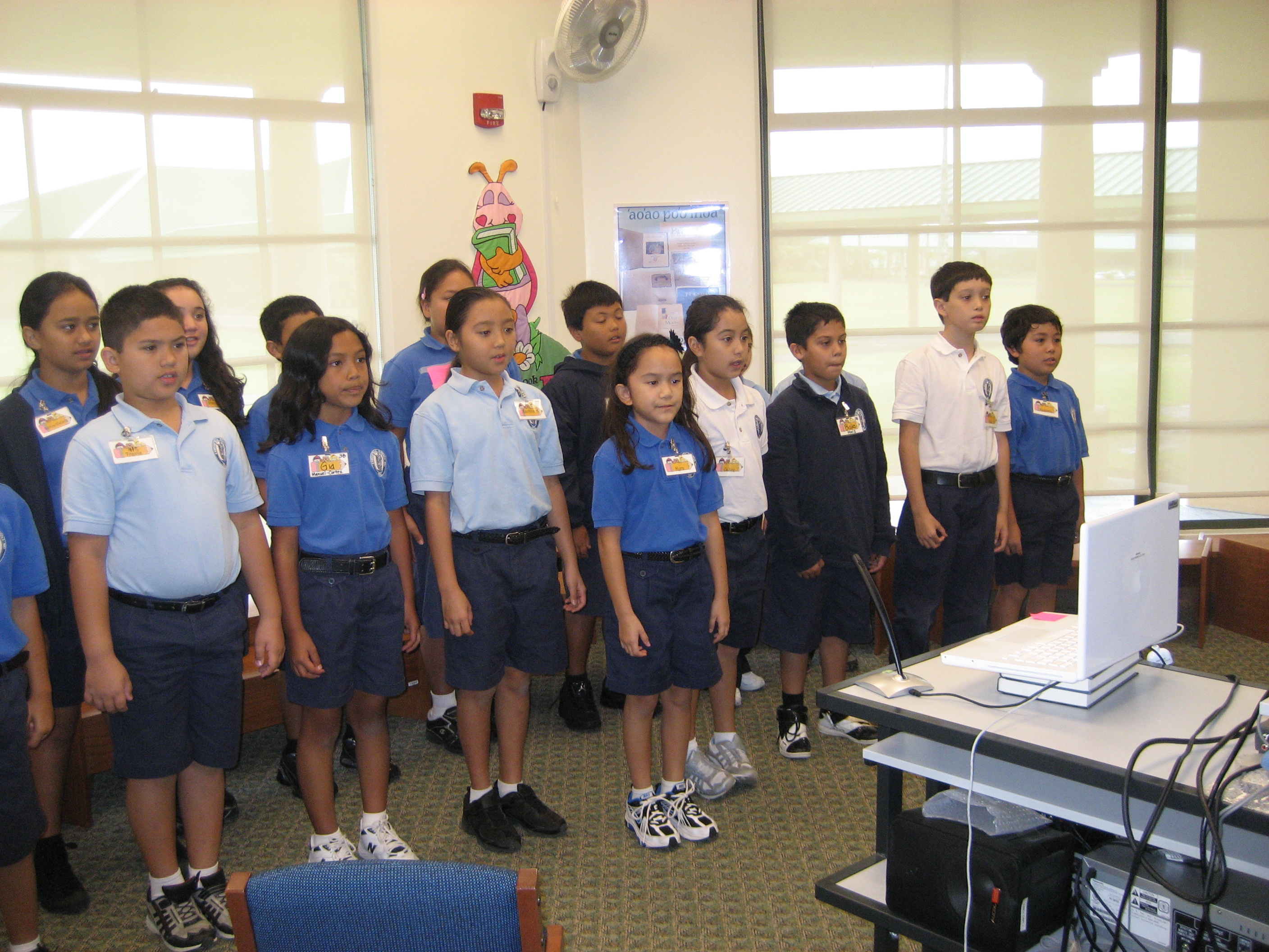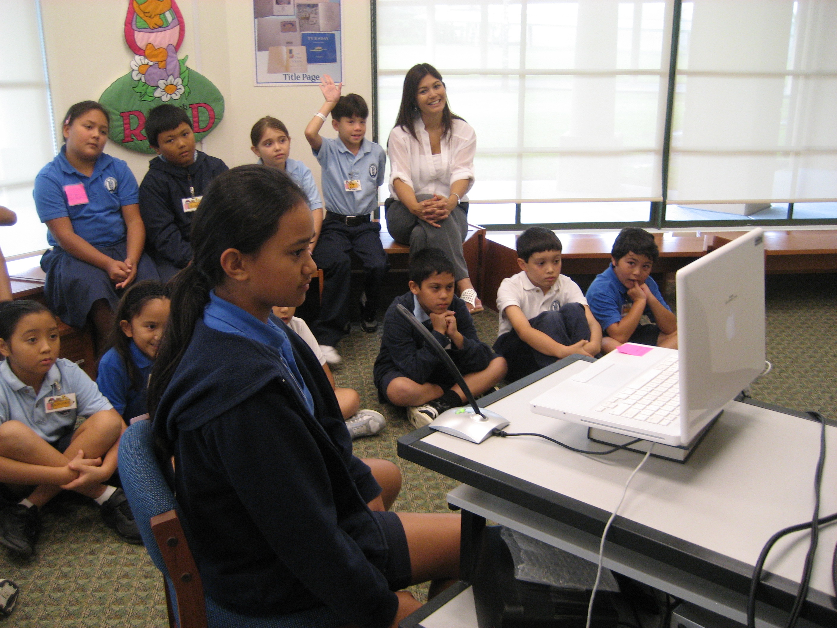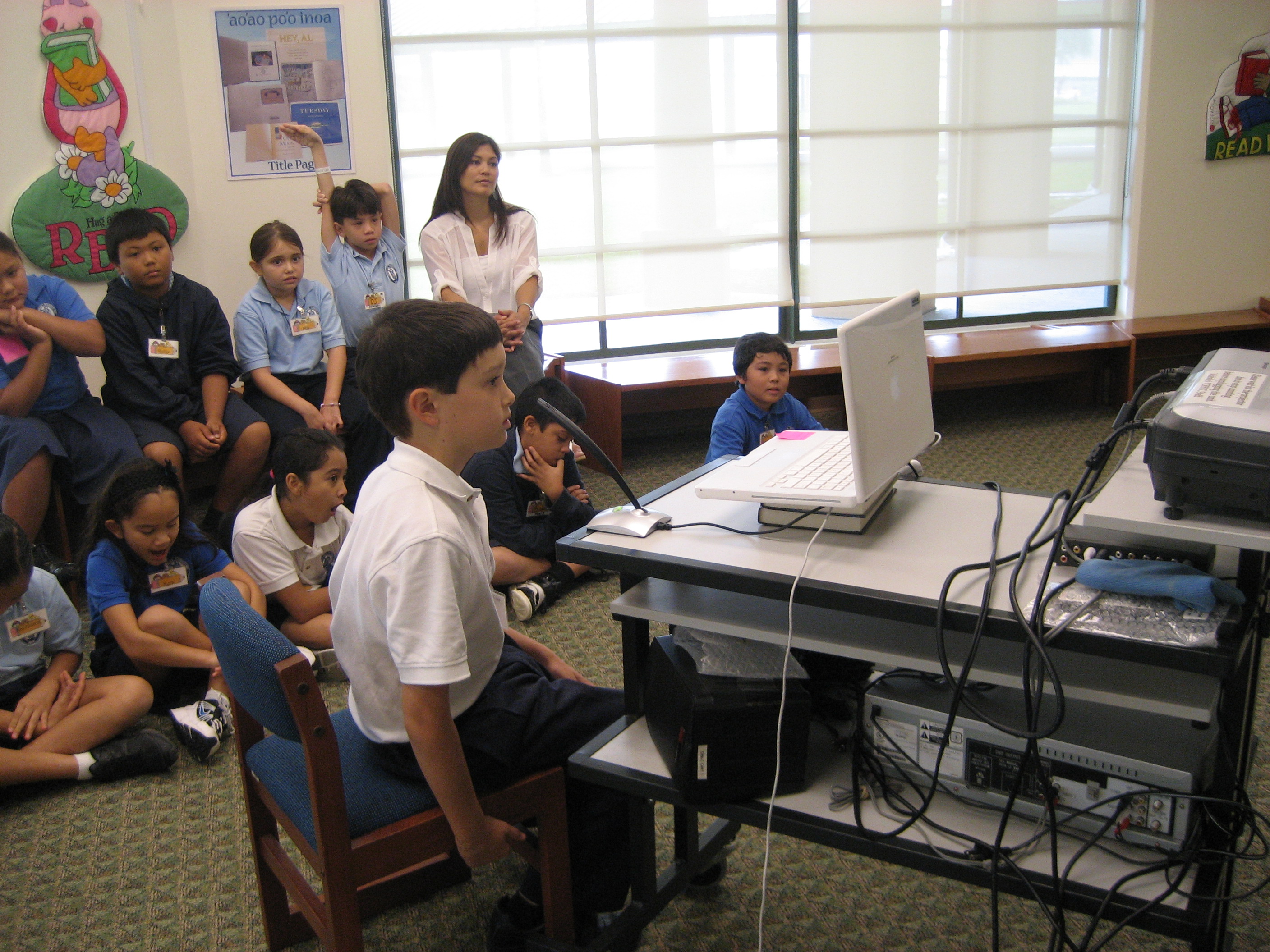 Yesterday, Mrs. Manliguis third grade class visited with author Margaret Peterson Haddix via a live streaming video conference from the Hi’ilei Media Center at Kapalama Campus. It was an awesome time of sharing and learning. Mrs. Haddix shared how she uses her imagination and sometimes real-life situations to write her books.