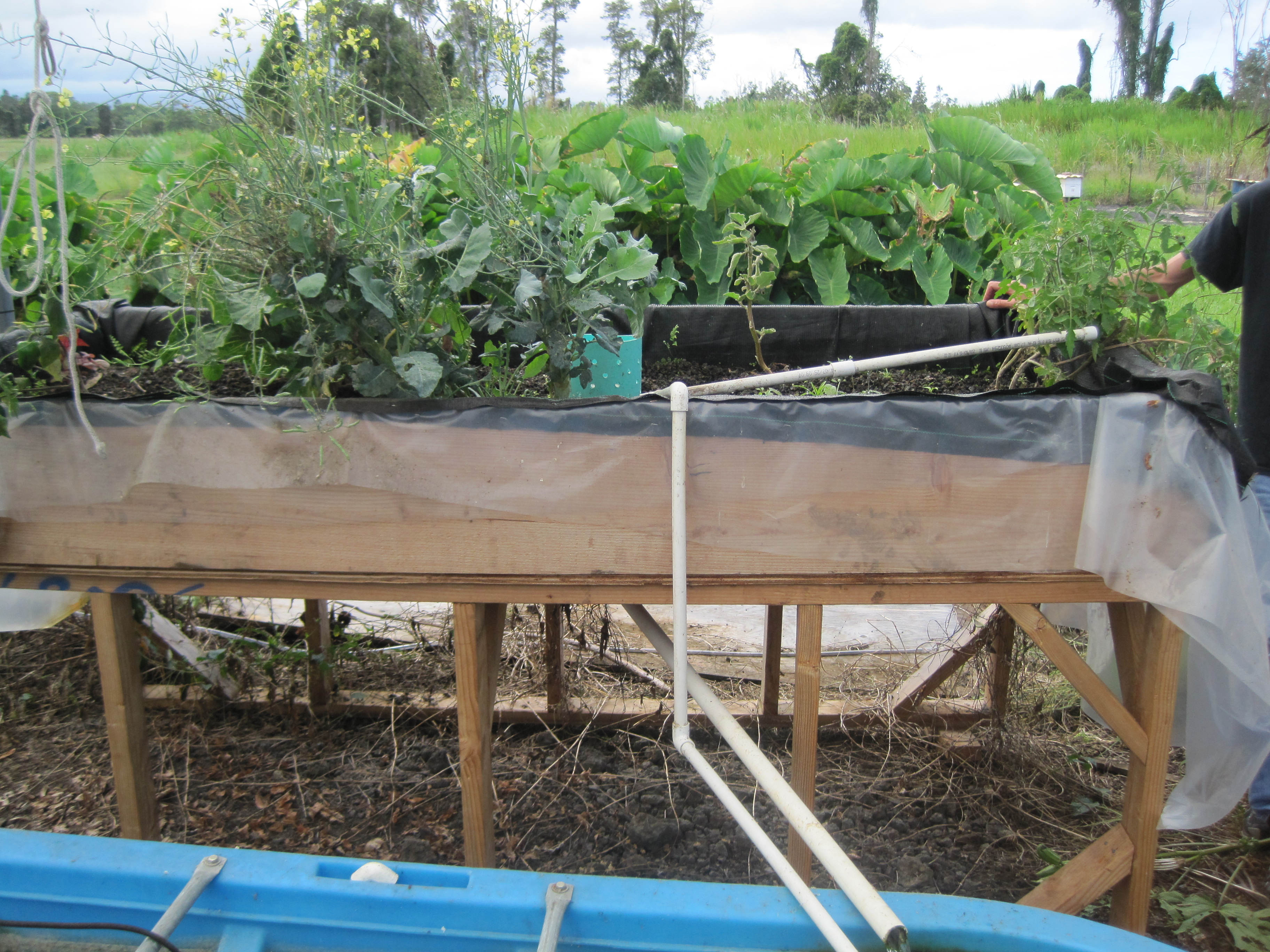 Friday afternoon, Kumu Kaleo, Kumu Littrell, Mrs. Chang, and Uncle Fred, from our Grounds division went on a huaka`i to the University of Hawai`i, Hilo Agriculture Farm. Our plan: learn about aquaponics. At the UH farm we met up with Aquaponics educator, Adam. Adam showed the kumu the different types of systems that can be made. He showed us the kinds of materials and tools we need to build our pond. He shared his mana`o on what would possibly work for young first grade keiki. Kumu Littrell and I were quite excited learning all about the aquaponics. With our new knowledge we hope to be getting our system “up and at `em”