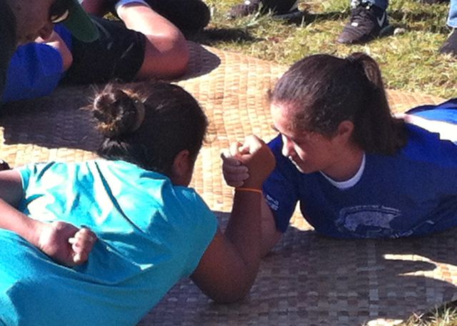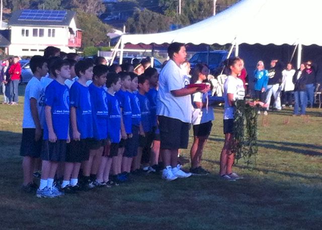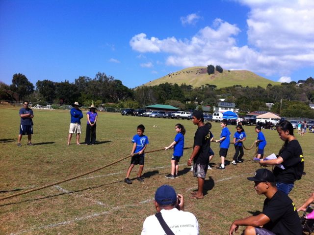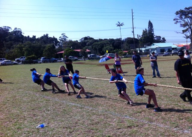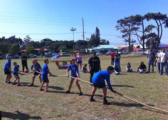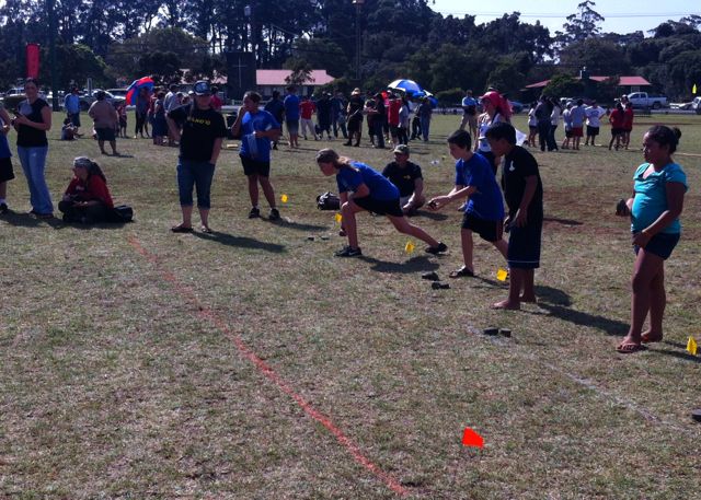 It was a beautiful day Saturday in Waimea for the 8th Annual Makahiki. Our twelve elementary warriors were up and ready to go very early in the morning. The skies were blue, the air crisp and Mauna Kea clear in the background as the puu sounded to begin the protocol for the day. The keiki were excited and nervous at the same time as this is their first time competing. They rose to the occasion and competed very well in their perspective events. Everyone competed and several placed in each of the events.