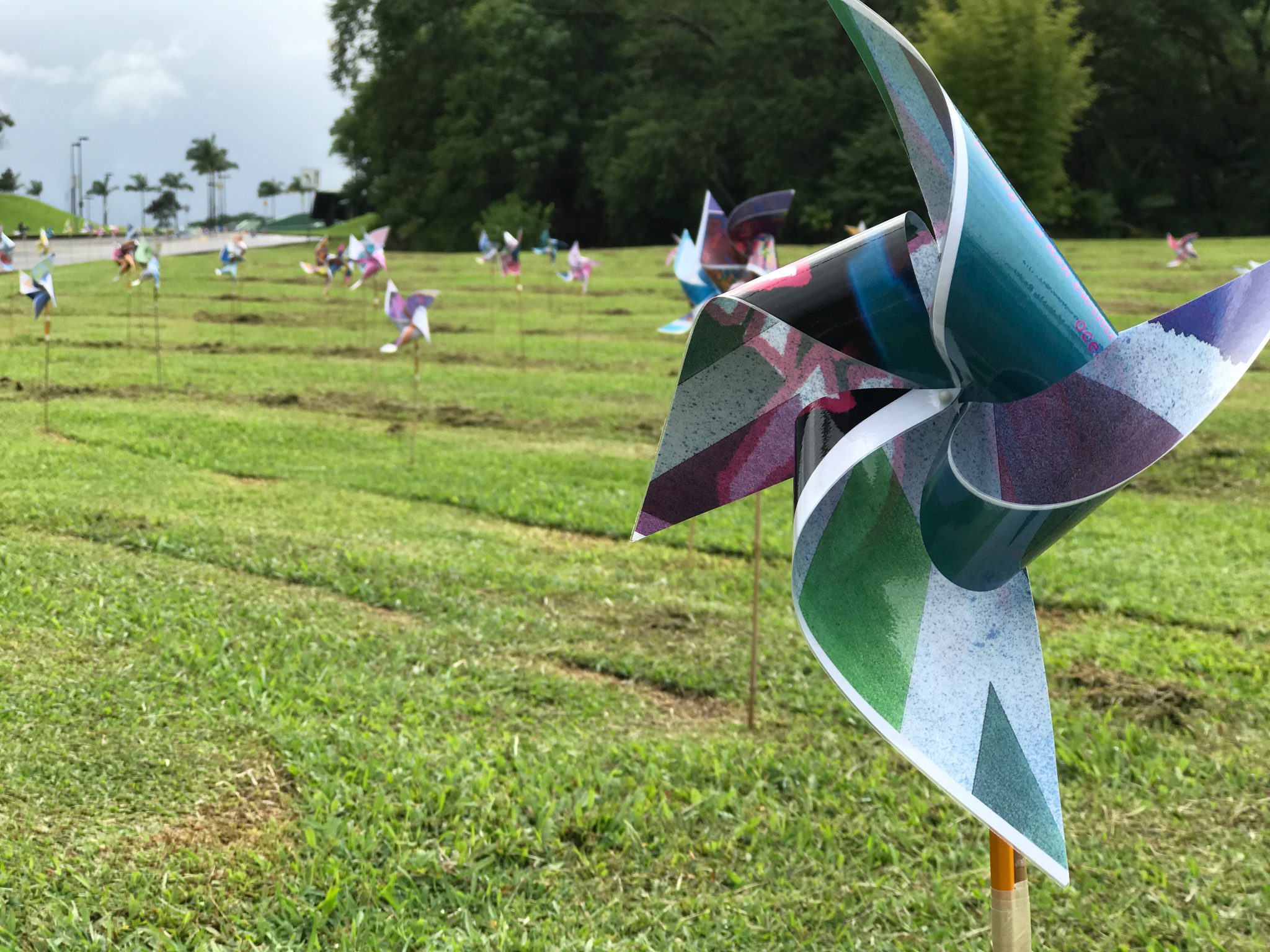 Of course this project could not have happened without many helping hands. A big mahalo to parents and ʻōhana who spent many hours constructing these delightful symbol and to our amazing parents and students who helped install 256+ pinwheels Wednesday afternoon. The Keaau showers managed to dry up just in time for installation and we worked extra fast to beat the next downpour! Check out the journey of our tenth installation….