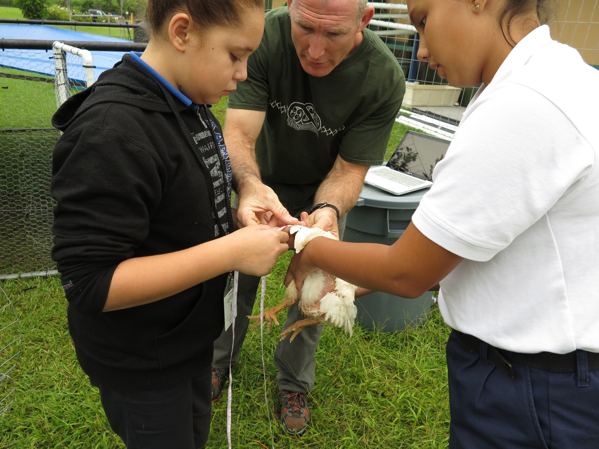 Students learning how to handle birds and take morphometric measurements to predict growth.