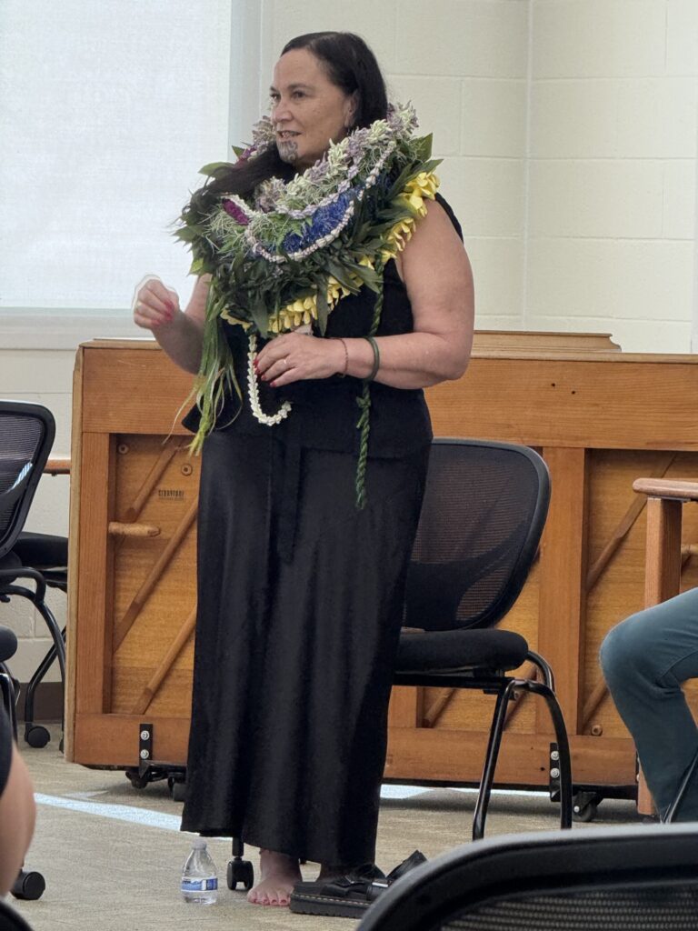 Two days after she spoke to our haumāna on our KS Maui campus, Debbie Ngarewa-Packer visited the University of Hawaiʻi at Mānoa on Thursday, October 30, to discuss the future of Indigenous governance and solidarity across the Pacific. She appeared in an onstage conversation with Dr. Noelani Goodyear-Kaʻōpua. Before entering Parliament, she led her iwi (people), Ngāti Ruanui, in successful campaigns to block seabed mining off the South Taranaki coast.