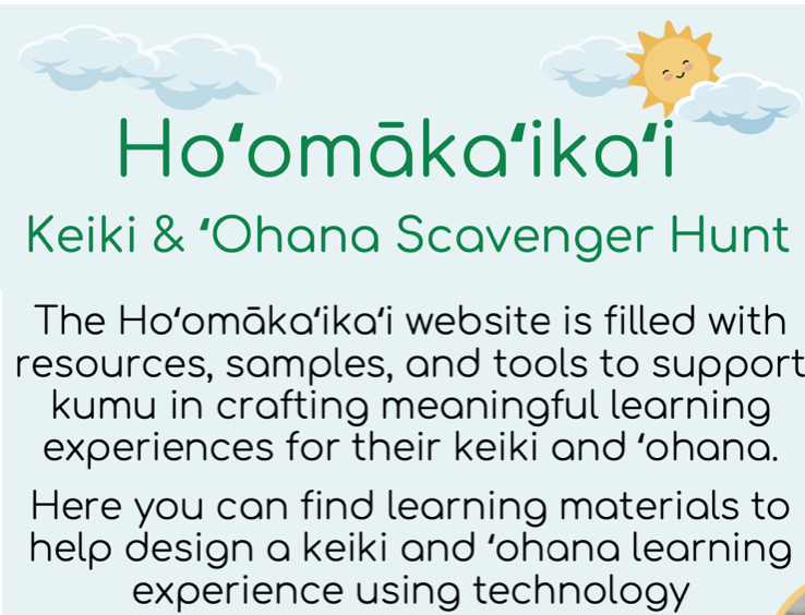 Hoʻomākaʻikaʻi ~ Keiki & ʻOhana Scavenger Hunt Home » iPad » Hoʻomākaʻikaʻi ~ Keiki & ʻOhana Scavenger Hunt *Must be signed-in to KS Account to access site: 🔗 bit.ly/hoomakaikai