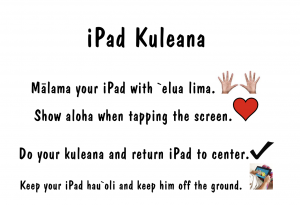 iPad Kuleana Poster Home » iPad » iPad Kuleana Poster Check out this cute poster made by one of our Puʻu Kāhea Preschool classrooms. Teaching the keiki about iPad kuleana is a great way to start the year off! Click on the picture below and download the poster, and print!