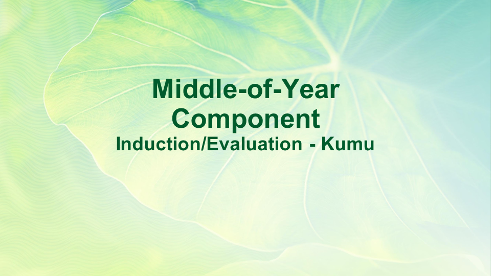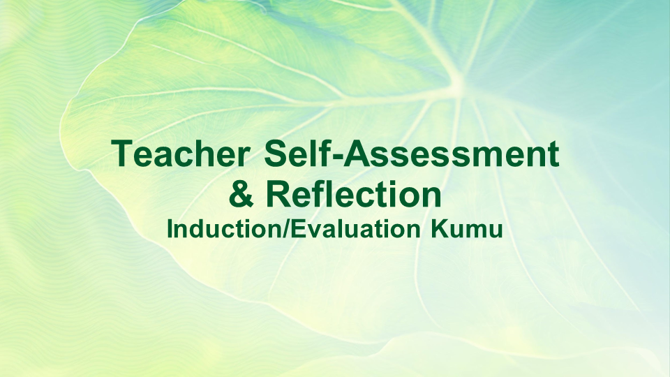 Induction/Evaluation (Kumu) Resources Ind/Eval Kumu Goal Setting Webcast Ind/Eval Kumu Middle-of-Year Webcast Ind/Eval Kumu Summative Webcast Ind/Eval Kumu Teacher Self-Assessment & Reflection Webcast Mini-Observation Reflection Webcast Ind/Eval Kumu Work Analysis & Reflection Webcast