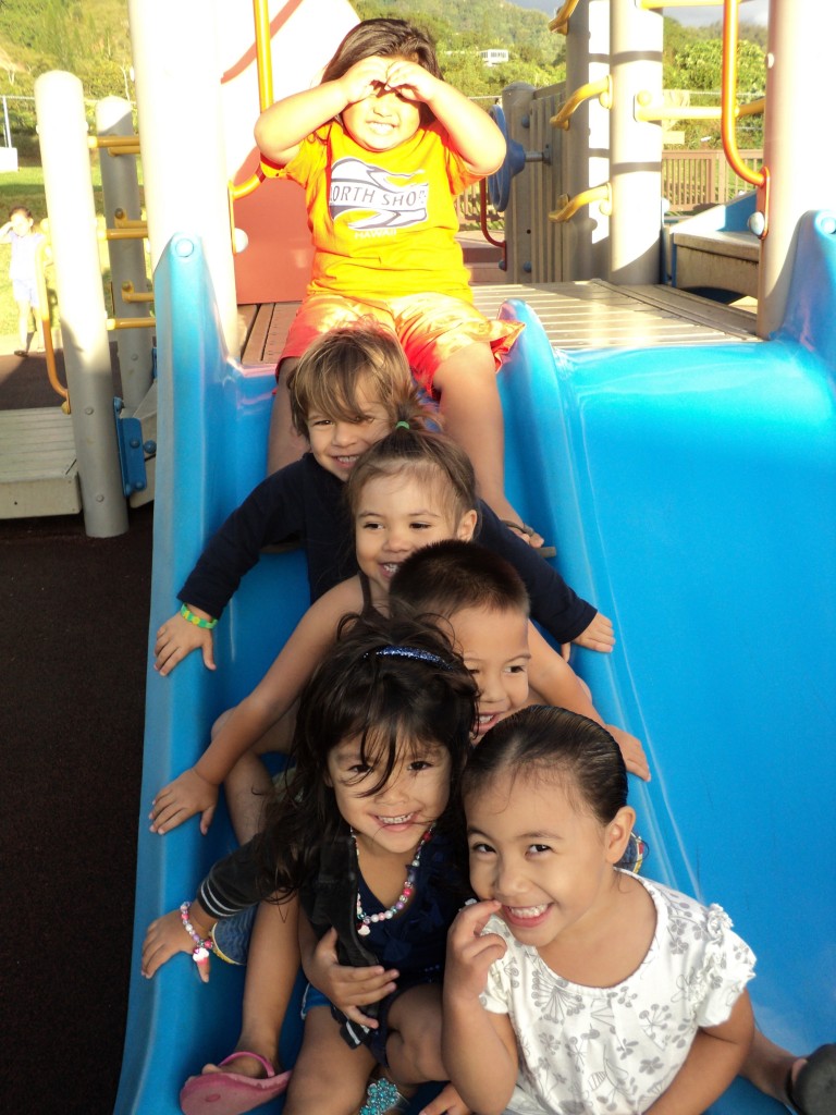 We finally have kalo plants in our garden box by the Water Play area. Since that area is always wet and the children love using water cans there, we wanted to take advantage of the water and plant something that grows well in soaked ground. Aunty Trixy, one of our Extended Day teachers, donated some kalo plants that she had in her yard. If you have any kalo plants that you’d like to donate or have connections with people that have lo’i kalo, we would welcome more plants.