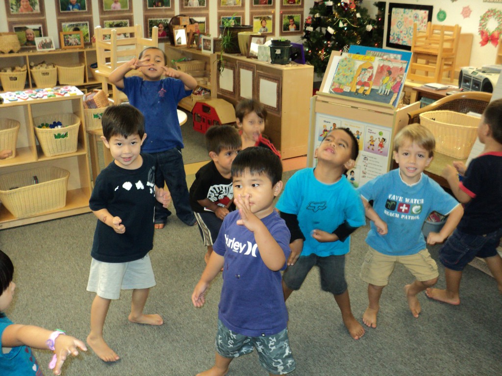 We’ve been practicing our dance moves and grooves. Next week Tuesday, our 4 year old Papa ‘Ohe buddies invited our class to a Dance Party in their classroom. Three year olds enjoy moving, playing, and creating with their bodies. Dancing is good exercise, burns energy, and allows children to express themselves and their feelings.
