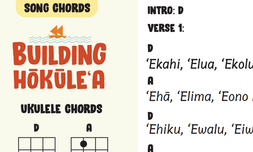Download the easy-to-play “Building Hōkūleʻa” ukulele chord sheet. This resource is ideal for kumu looking to enrich lessons with cultural depth and musical fun.