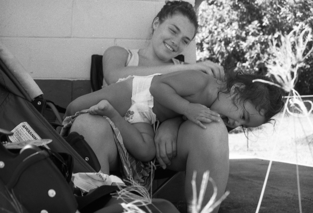 - Diffused natural lighting – even though it looks like a bright day, the subjects are in the shade of a building, creating a softer feel